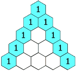 在杨辉三角中,每个数是它左上方和右上方的数的和。